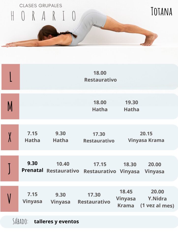 • Bono 6 clases (todas modalidades),35€ (solo para yoga)